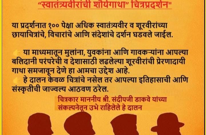 सातारा:- पाचगणी तालुका शिराळा येथील संघर्ष युवा प्रतिष्ठान यांच्यातर्फे गणेश उत्सवा निमित्त “माझा गणपती माझी सृजनशीलता” या विशेष उपक्रमातून स्वातंत्र्यवीरांची शौर्यगाथा चित्रप्रदर्शन करण्यात येणार आहे. गेली अनेक वर्षे संघर्ष युवा प्रतिष्ठान पाचगणी सामाजिक कार्यक्रमात अग्रेसर भूमिका घेत असते. अनेक पुरस्काराने संघर्ष युवा प्रतिष्ठान पाचगणी यांना सन्मानित केले.