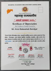 आदर्श शिक्षक पुरस्काराने अमोल बाळासाहेब बंडगर सन्मानित.