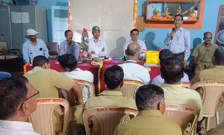 मुंबई:- बृहन्मुंबई महानगरपालिका नेहमीच विविध कारणाने देशाचे लक्ष वेधून घेत असते. यावेळी अधिकारी आणि कामगार यांच्यातील गोड नात्यामुळे चर्चेत असल्याचे दिसते. ए वॉर्डमधील मलनि:सारण खात्याचे कनिष्ठ अभियंता संतोष सोनवणे यांची दुसऱ्या विभागात बदली झाली आहे. सोनवणे यांची बदली झाल्याची गोष्ट कामगारांना कळताच त्यांच्या शेवटच्या दिवशी त्यांचा सत्कार करण्याचे ठरवण्यात आले.