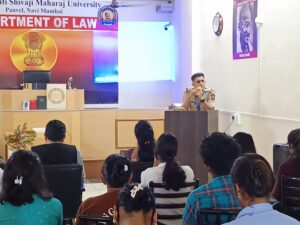 पनवेल:- वाढत्या सायबर गुन्ह्यांच्या पार्श्वभूमीवर विद्यार्थ्यांमध्ये जागरूकता निर्माण करण्याच्या उद्देशाने छत्रपती शिवाजी महाराज विद्यापीठ, शेडुंग (ता. पनवेल) यांच्या वतीने सायबर सुरक्षा जनजागृती कार्यक्रमाचे आयोजन करण्यात आले. या कार्यक्रमास पनवेल तालुका पोलिस ठाण्याचे सक्रीय सहकार्य लाभले.