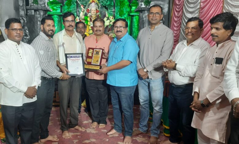 रायगड:- सिनेअभिनेते डॉ.राजू पाटोदकर व आवाज महामुंबईचा चे संपादक श्री.मिलिंद खारपाटील साहेब, चाईल्ड केअर सामाजिक संस्थेचे सर्वेसर्वा संस्थापक अध्यक्ष विकास कडू यांच्या हस्ते सामाजिक कार्यकर्ते सचिन किसन गावंड(दुरशेत-पेण) यांना ट्रॉफी, प्रमाणपत्र शाल आणि श्रीफळ देऊन पागोटे-उरण येथे सन्मानित करण्यात आले. रायगड जिल्ह्यामध्ये वेगवेगळ्या क्षेत्रात उल्लेखनीय कार्य करणाऱ्यांचा रायगड विशेष सन्मान पुरस्कार देऊन गुणगौरव करण्यात आले. या पुरस्कार सोहळ्यास शिवराज अनंत पार्टे माजी नगर सेवक पोलादपूर, महेश कडू माजी सरपंच सोनारी, मेघनाथ तांडेल (माजी अध्यक्ष पागोटे, भार्गव पाटील माजी सरपंच पागोटे, सुजित तांडेल (माजी उप सरपंच पागोटे), विठ्ठल ममताबादे (चाईल्ड केअर संस्था मीडिया सल्लागार) उपस्थित होते. सदर सन्मान सोहळा प्रसंगी चाईल्ड केअर सामाजिक संस्थेचे विकास कडू (संस्थापक अध्यक्ष ),विक्रांत कडू (कार्याध्यक्ष ), विवेक पाटील (अध्यक्ष), मनोज ठाकूर (कार्याध्यक्ष), प्रकाश ठाकूर (सचिव),कैलासराजे घरत (पेण तालुका अध्यक्ष),विनायक म्हात्रे पनवेल अध्यक्ष), हितेश म्हात्रे (उपाध्यक्ष),राजेश ठाकूर (उपाध्यक्ष), हितेश म्हात्रे (उपाध्यक्ष ),तुषार ठाकूर(सहचिटनिस),ह्रितिक पाटील (सहचिटनीस),भूषण भोईर, उद्धव कोळी, विश्वनाथ घरत, सचिन गावंड(सहसचिव ), रिया कडू, विवेक कडू, आदित्य पारवे आदी