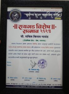 सामाजिक कार्यकर्ते महाराष्ट्र भूषण सचिन किसन गावंड “रायगड विशेष सन्मान-२०२५” पुरस्काराने सन्मानित..!