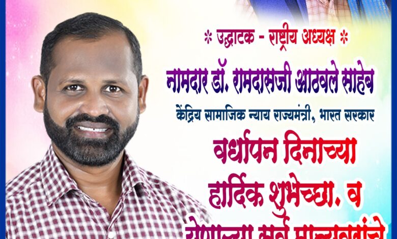 पनवेल – रिपब्लिकन पार्टी ऑफ इंडिया (आठवले) चे राष्ट्रीय अध्यक्ष तथा केंद्रीय सामाजिक न्याय राज्य मंत्री नामदार रामदासजी आठवले साहेब यांच्या आदेशानुसार पक्षाचा ६८वा वर्धापन दिन मोठ्या उत्साहात साजरा होणार आहे.