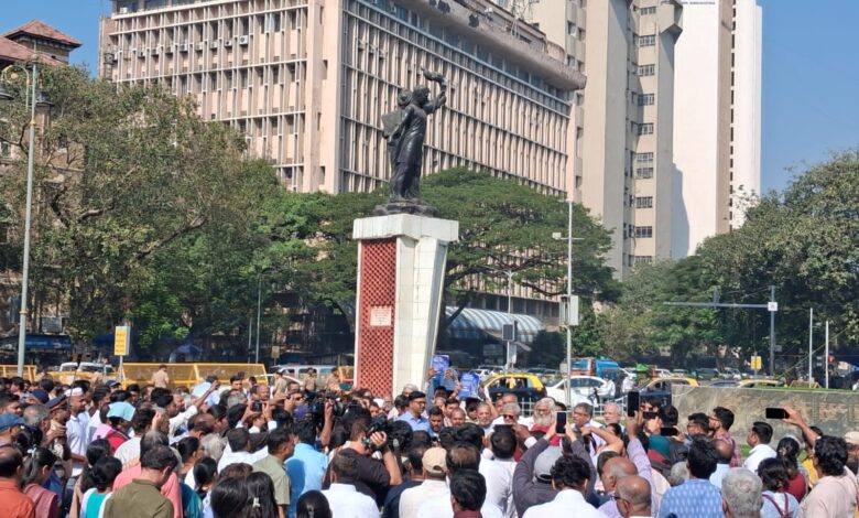 पोलिसांनी मोर्चाला परवानगी नाकारलयामुळे हुतात्मा चौकात जमाव बंदीचे आदेश असल्याचे माहिती आंदोलकांना दिली. आंदोलकांकडून हुतात्मा स्मारकास अभिवादन करण्यात आले. आंदोलकांनी जय जय महाराष्ट्र माझा… हे गीत गायले आणि मुंबई महानगरपालिकेच्या दिशेने रवाना झाले.